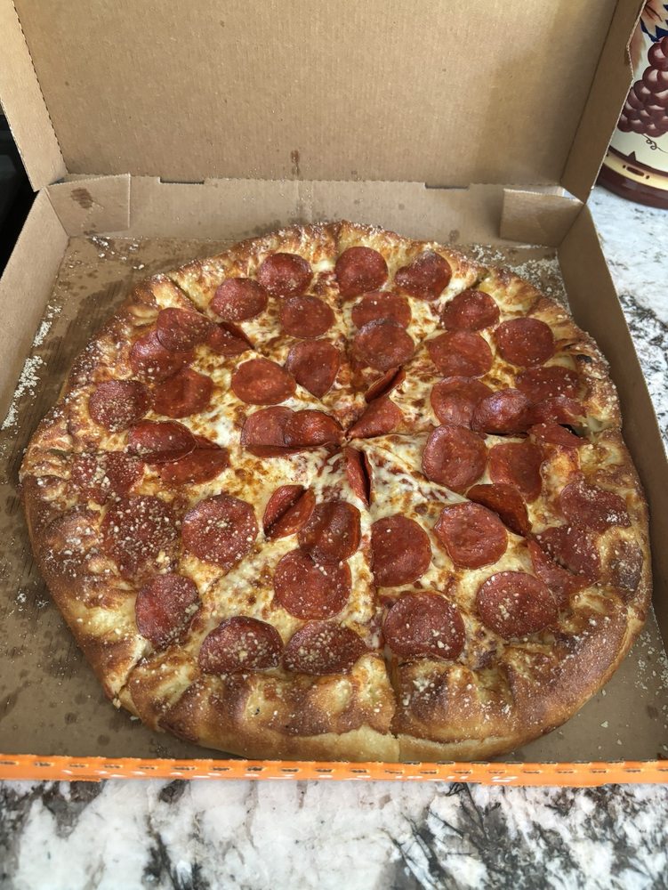 Large round Pepperoni pizza with a stuffed crust brushed with our signature Crazy Crust, a buttery-flavored garlic spread sprinkled with Parmesan.